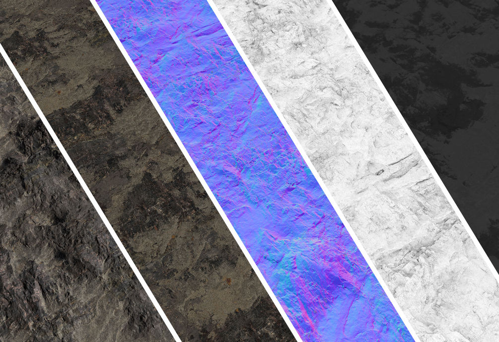 - (Diffuse, Albedo, AO, Displacement Map, Gloss, Normal, Roughness Map, Specular Map, Metalness).