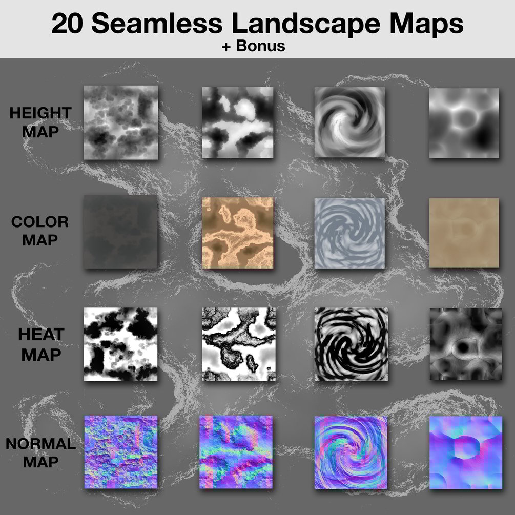4K LANDSCAPE BUNDLE PACK - 20 Seamless Landscape Height Maps & 15 Realistic Terrain Maps + Textures.